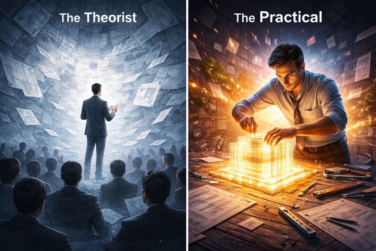 عَلى الجَانِبِ الآخَرِ، العَمَلِيُّونَ هُمْ أُولئِكَ الَّذِينَ يَتَمَيَّزُونَ بِقُدْرَتِهِمْ عَلى تَحْوِيلِ الأَفْكارِ وَالخُطَطِ إِلى وَاقِعٍ. يَتَمَتَّعُونَ بِمَهَارَةِ اتِّخاذِ القَراراتِ السَّرِيعَةِ وَالتَّفاعُلِ المُباشِرِ مَعَ الواقعِ، مُبْتَعِدِينَ عَنِ الإِفْرَاطِ فِي التَّفْكِيرِ وَالتَّحْلِيلِ. يَسْتَثْمِرُونَ وَقْتَهُمْ وَجُهْدَهُمْ فِي العَمَلِ المُلْمُوسِ، مِمَّا يَجْعَلُهُمْ مُحَرِّكِينَ أَسَاسِيِّينَ لِلتَّغْيِيرِ وَتَحْقِيقِ النَّجاحاتِ.