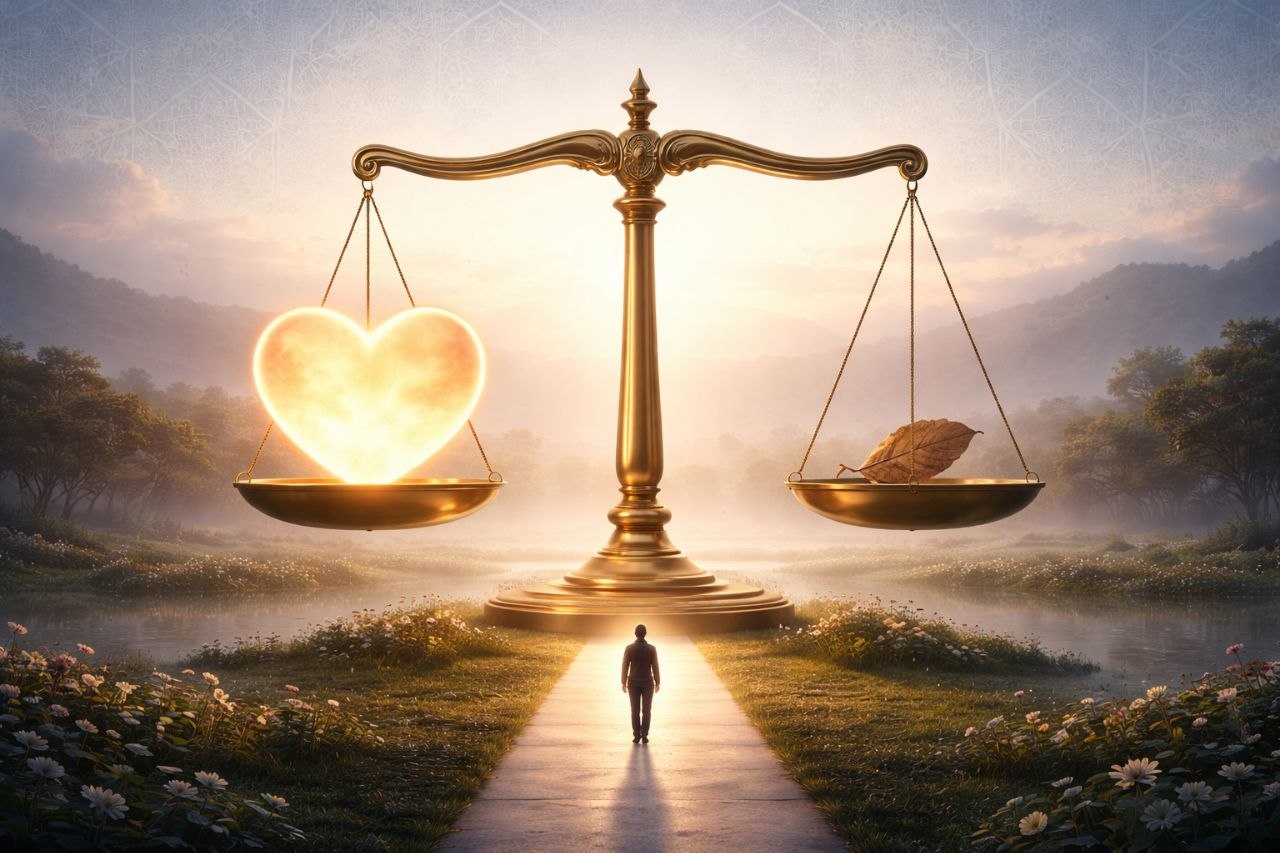 ثانياً: التَّوازنُ الإلهيُّ: تقبَّلْ ما قسمهُ اللهُ لكَ من خيرٍ أو شرٍّ، بِرضىٍ وتسليمٍ، مُكبِّراً نعيمَهُ، مُصغِّراً مصائبَهُ.